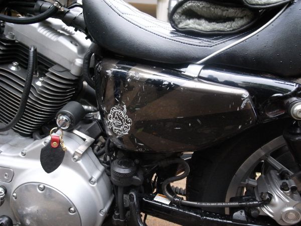 なんと!すき間産業のBOSS、竹田さんのスポーツスターのサイドカバーが走行中にポロリと・・・